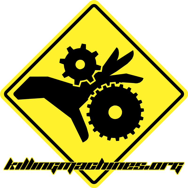 The KillingMachines.org weblog community was in need of a logo to use on promotional t-shirts. I focused on imagery from caution signs of hands being crushed in machinery, with strong yellow and black colors. The logotype is a simple one, using a sharp, dangerous-looking font.