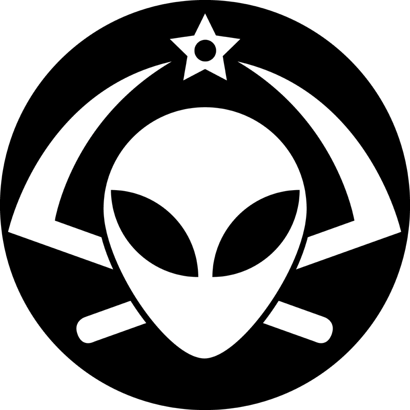 When I first started doing web design, I needed a name to operate under. Together with a friend, I chose the name Space Ninja design, combining two of our favorite things. The logo naturally needed to reflect both space and ninjas. The final design includes ninja weaponry with an alien head, all enclosed in a circle to represent an astronaut's bubble helmet. Additionally, the layout of the head and weaponry is meant to reflect the way martial-arts dojos display weaponry on the walls.